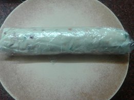 •Give a square shape and wrap tightly in a plastic sheet. and keep this in freezer for 40-50 mins.