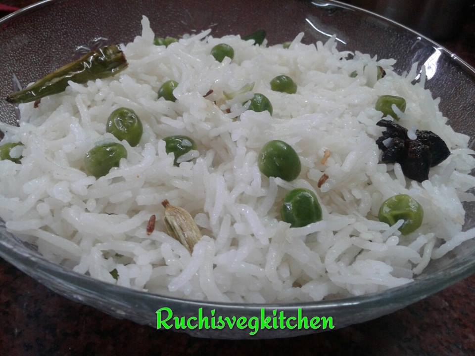 Wash and soak rice for 30 mins, In a Nonstick Pan take 2 tsp Ghee. When hot Add Clove, cardamom, Cinnamon, Star anice, green chillies, curry leaves, cumin seeds. When all done add hing and 1/2 glass water. When water boils add rice with soaked water itself. (Dont throw that soaked water). Add Salt and green peas. When it start boiling close the lid and allow it cook for 15-17 mins. Stir occasionally with wooden spatula …