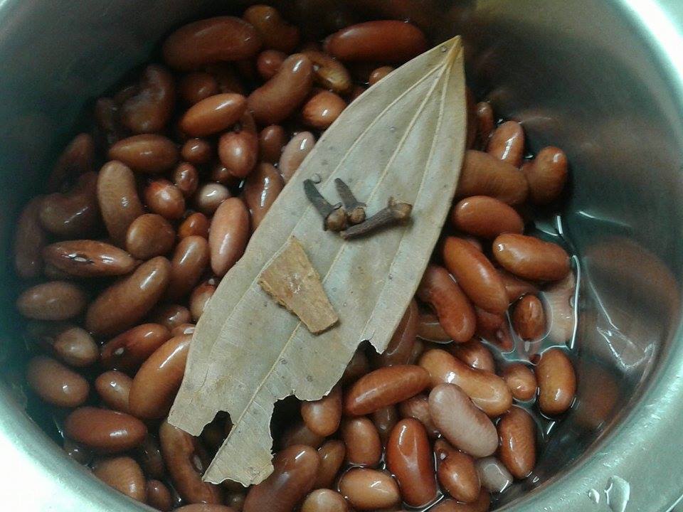 Rinse and soak the rajma or kidney beans in enough water overnight or for 8-9 hours.next day, discard the water and rinse the beans again in fresh water.in a pressure cooker, take rajma, 4 cups water, clove, bay leaf, cinnamon, bit salt and a pinch of cooking soda. Here cooking soda will help to cook fast and will give smooth texture to Rajma.
