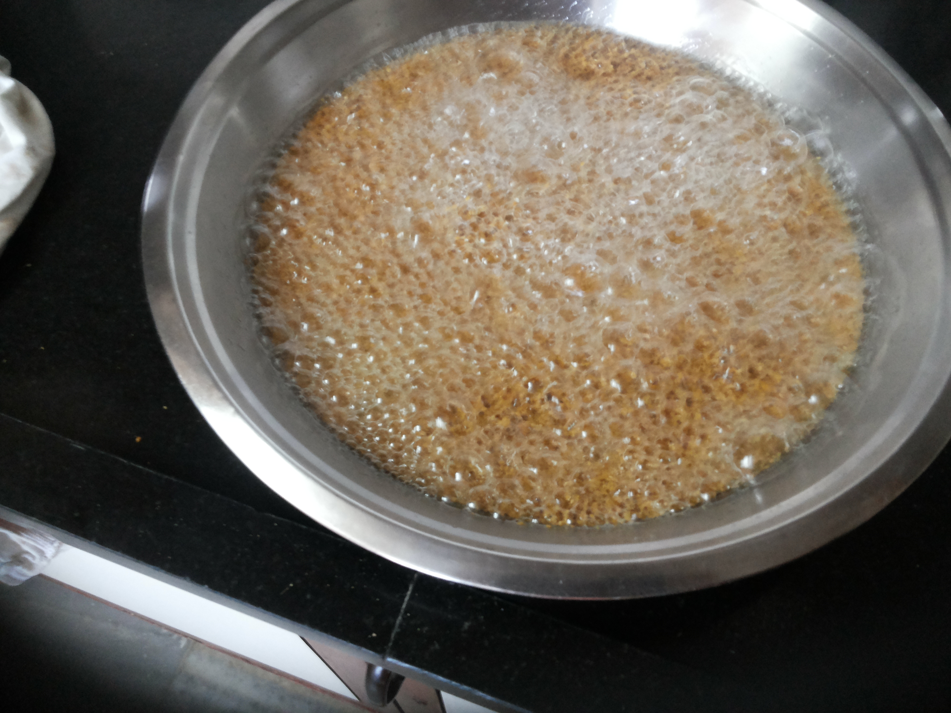 Once you pour oil, immediately cover that plate. Allow it to cool, after 10 mins sprinkle 1/2 tsp hing on it and again cover it. Allow it to cool completely, it may take 2-3 hrs. Before adding spices , make sure its cool completely not even warm.