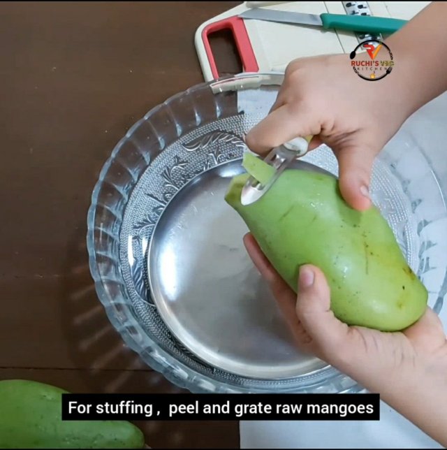 - To make stuffing, bWash, clean the peel the mangoes. Grate it. The grate should not be very thin…