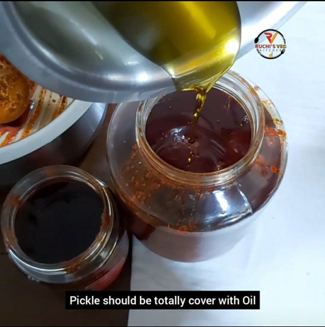 - Oil should cover the pickle in jar , if not pickle will get fungus soon. Oil must be in good quantity.