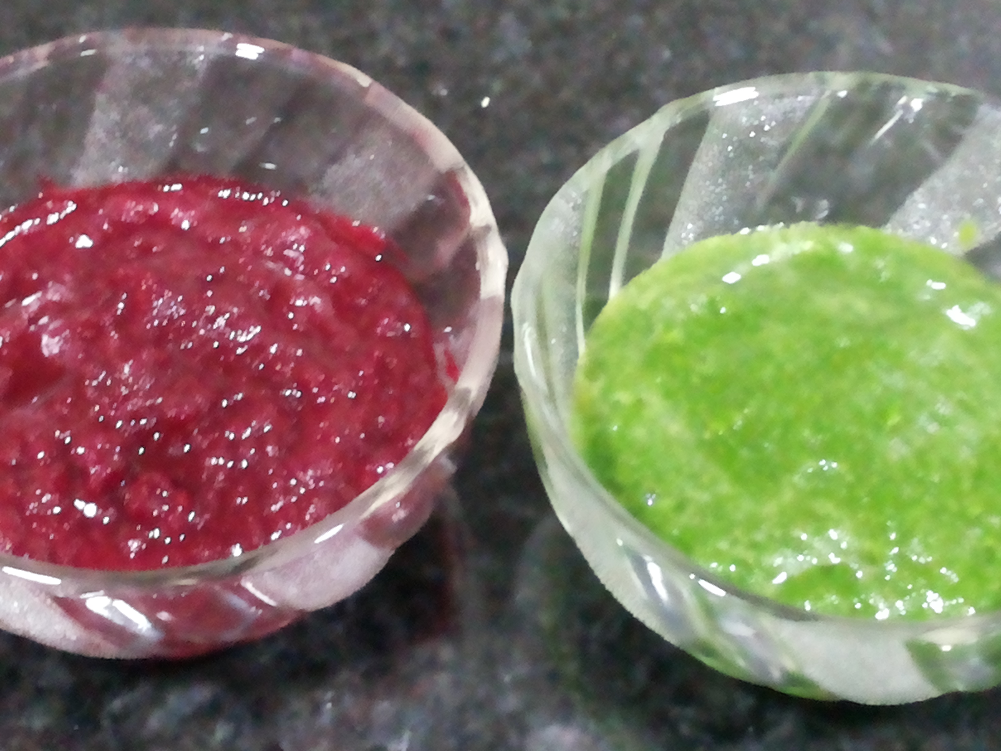 Above is the image for Beet Puree and Coriander Mint Chutney..
