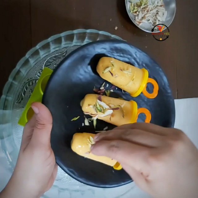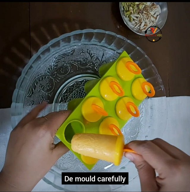 - I have used Kulfi moulds but if you dont have it then one can use small cups , just wrap it with aluminium foil and insert a wooden stick.
