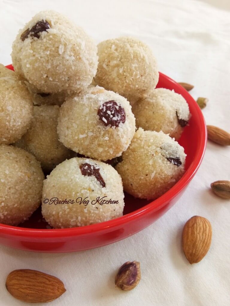 Rava Ladoo / Rawa laddu is a super easy , quick, very delicious and melt in mouth sweet . This cute white ladoos are made from Semolina and sugar mainly . Added dry fruits will enhance the taste and will add crunch in ladoo ..