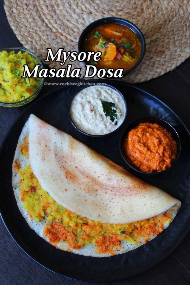 Dosa recipes are very much indigenous to south indian cuisine. Region vise the texture and appearance changes. In North part of India, Mysore Masala dosa is crispy and thin where in southern part specially in Mysore , it’s thick and brown color dosa.