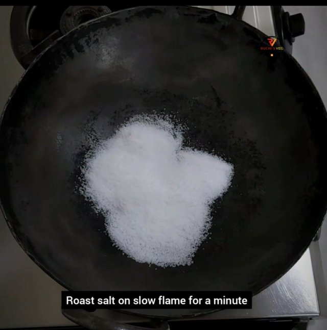 - Dry roast Salt. Just roast the salt for a minute on a slow flame in a thick bottom wok.. Allow it to cool completely before adding to the Masala.