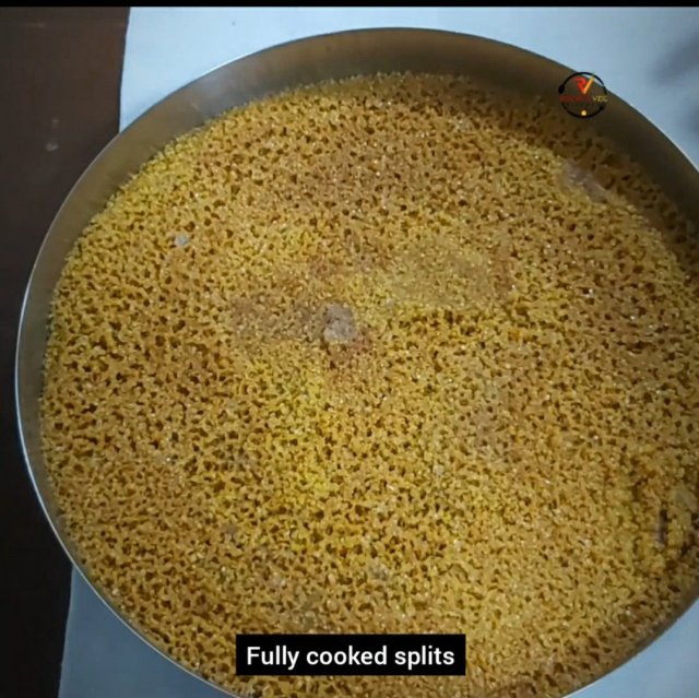 - Grind both splits a little in mixer grinder. Don’t make powder , we just have to churn it little.