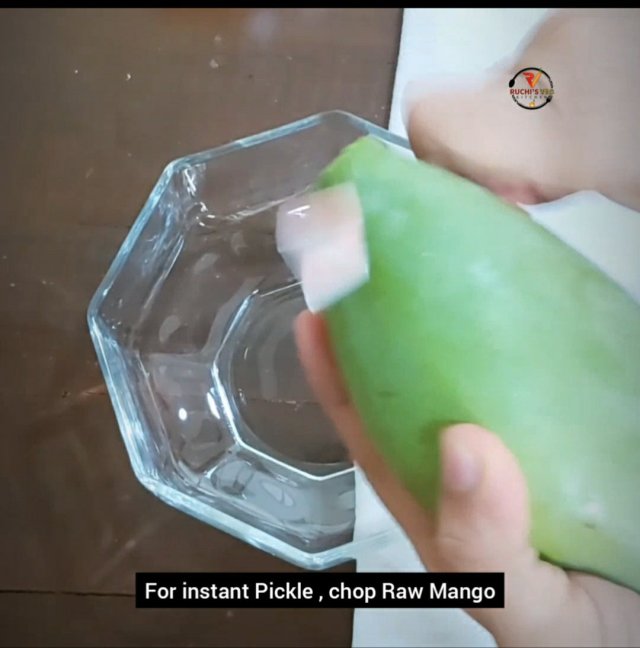 Now , let’s prepare a quick pickle with this Masala. Chop Mango .