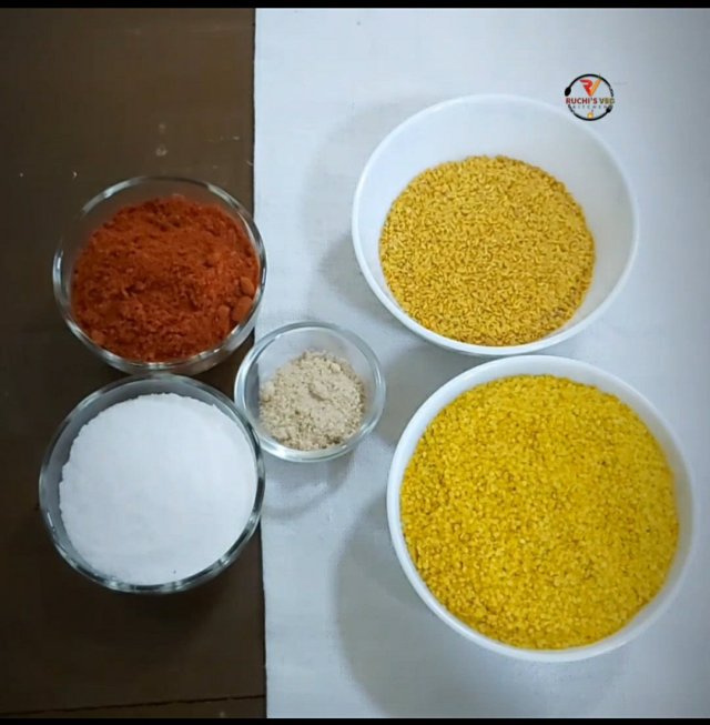 First , clean split Mustard seeds splits (Rai Kuria) and Fenugreek seeds splits (Methi Kuria) . I have used store bought . One can make at home too. Many uses Mustard Splits and Fenugreek Splits same quantity for pickle masala.. I personally , dont like the more of fenugreek flavor in my pickle.. one can use as per taste..