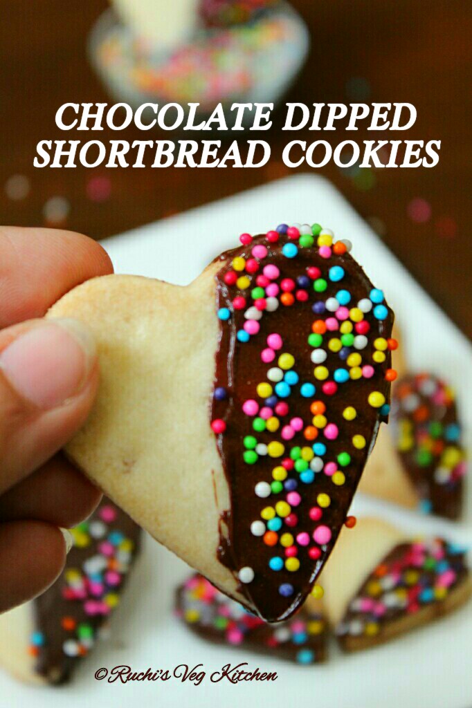 Soft , Buttery , Delicious , melt in mouth shortbread cookies are dipped in Chocolate … The flavours are wonderful in these cookies. These cookies are just perfect for any festival or any occasion to enjoy or to gift to your loved ones. So easy and full proof recipe .. These cute looking Chocolate Dipped Short bread cookies can be ready in 30 minutes ..