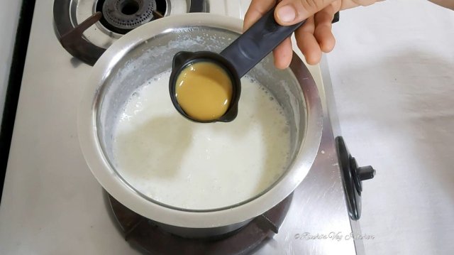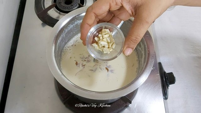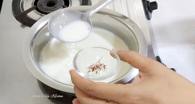 Boil milk till it reduced half. Add 2 to 3 tbsp Condensed Milk . Mix well . Boil for more 2 to 3 minutes .