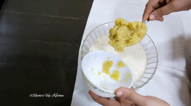 - Always mix thickened milk and cooked apple only after cooled completely else milk will curdle.