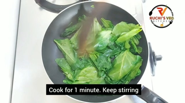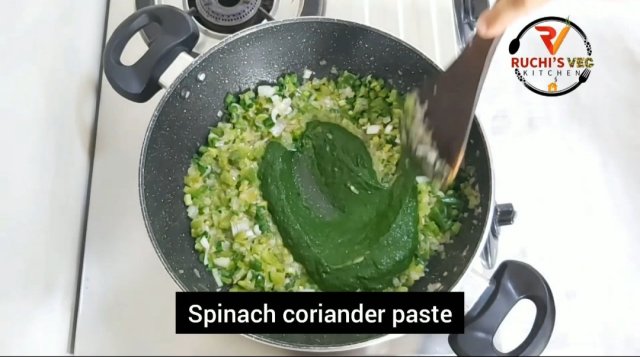 - Now , add spinach paste. Cook for 1 minute on medium flame. Keep stirring