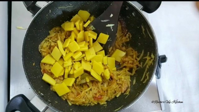 This is one more specialities of my Mom. Even today whenever I visit to Mom place, its an unsaid rule to make this vegetable every week during my stay. She makes this vegetable so nicely .