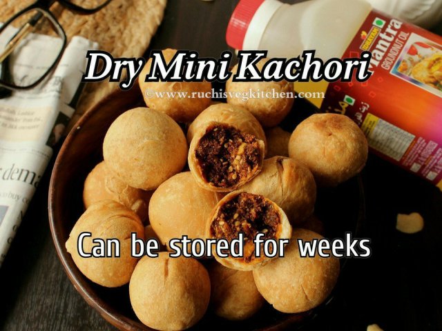 Dry Kachori is a deep fried crispy and crunchy balls, made from flour and spicy tasty stuffing. These dry kachoris can be stored for many weeks or months..