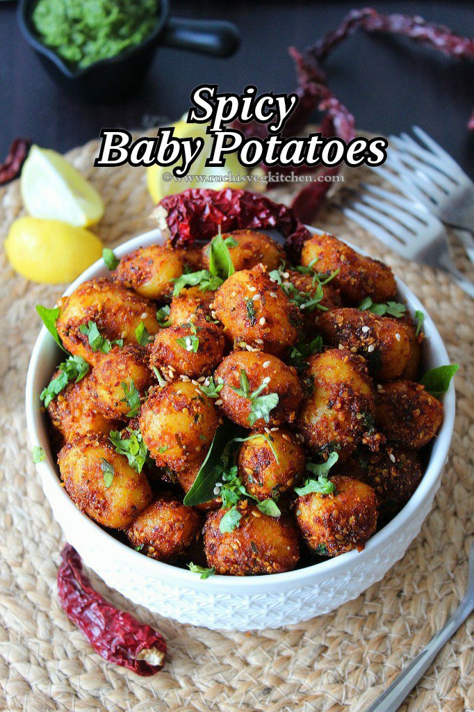 Spicy , Delicious, Quick and very Easy Baby Potatoes are perfect vegetarian side dish which can be served as snack or starter. It also tastes great with some hot paratha or roti and bowl of chilled curd.