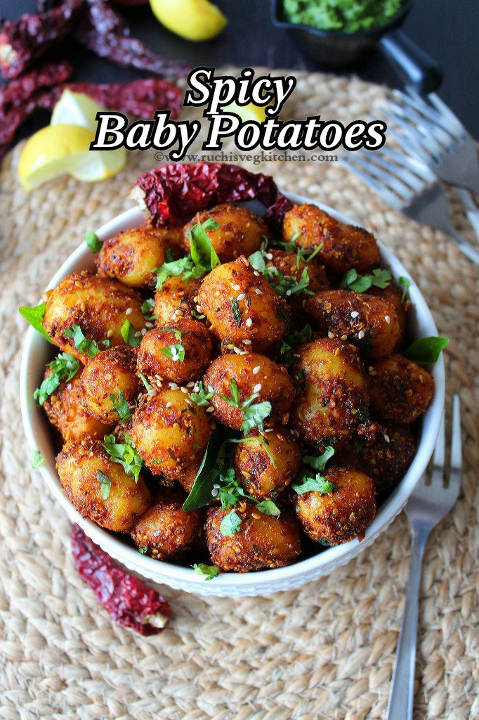Spicy , Delicious, Quick and very Easy Baby Potatoes are perfect vegetarian side dish which can be served as snack or starter. It also tastes great with some hot paratha or roti and bowl of chilled curd.