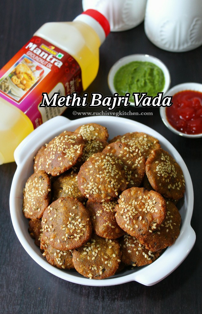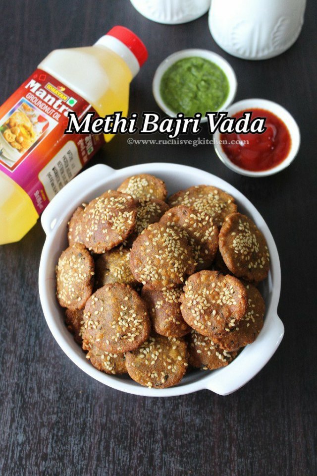 Methi Bajri Vada Recipe / Pearl Millet Flour Fritters / Gujarati Methi Bajri na Vada recipe with written details and video recipe