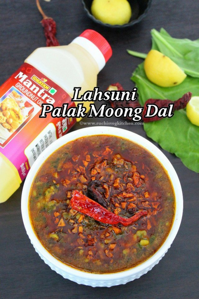 Easy, Quick, Protein packed ,Healthy and very delicious Lahsuni Palak Moong Dal . This can be served as Curry or Dal with Roti , Paratha, or Steamed Rice