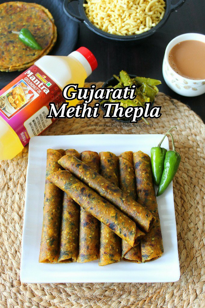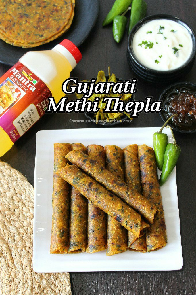 I have made this very flavourful,  tasty and healthy Gujarati Methi Thepla with IDHAYAM MANTRA  GROUNDNUT OIL. Using this traditional , unrefined ,natural and pure groundnut oil gives pleasure and satisfaction towards health of my family. Idhayam Mantra Groundnut Oil is a heart friendly oil too. The high smoking point of groundnut oil makes it ideal for deep frying too.