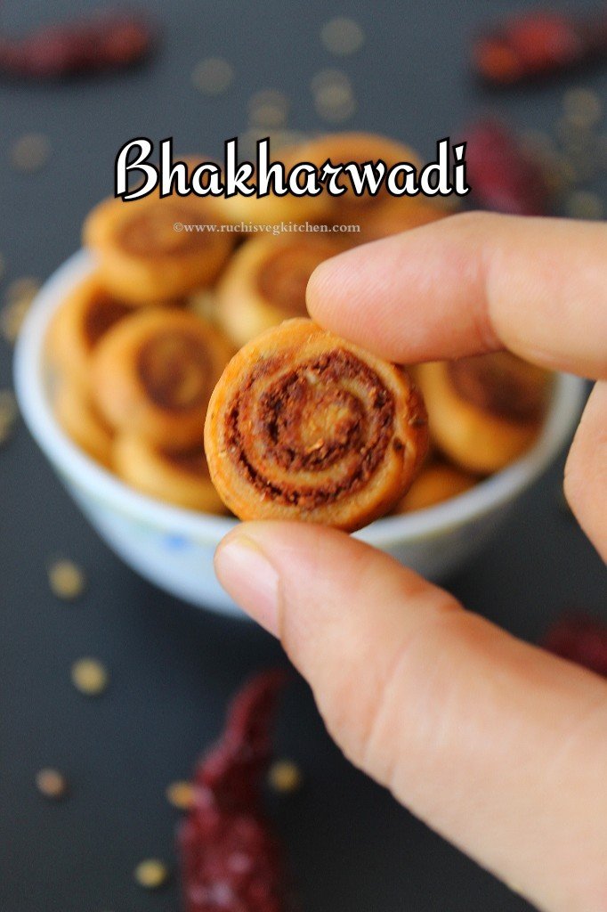 Bhakharwadi is a fried crispy pinwheels/ spirals. It is one of the most popular recipe from Western India. Bhakharwadi / Bakarwadi is very addictive and has blasts of flavours.. Bhakharwadi is Spicy, Sweet and tangy snack variety ..