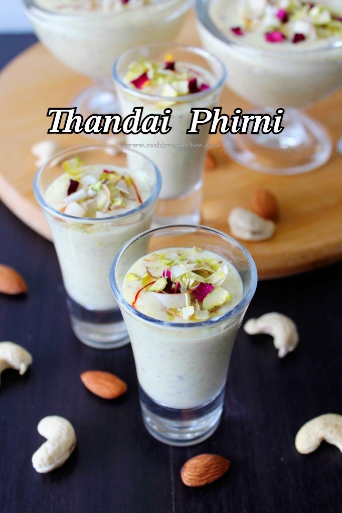 Garnish Thandai Phirni with some slivered nuts and dried rose petals and serve as a dessert after your everyday North Indian meals.